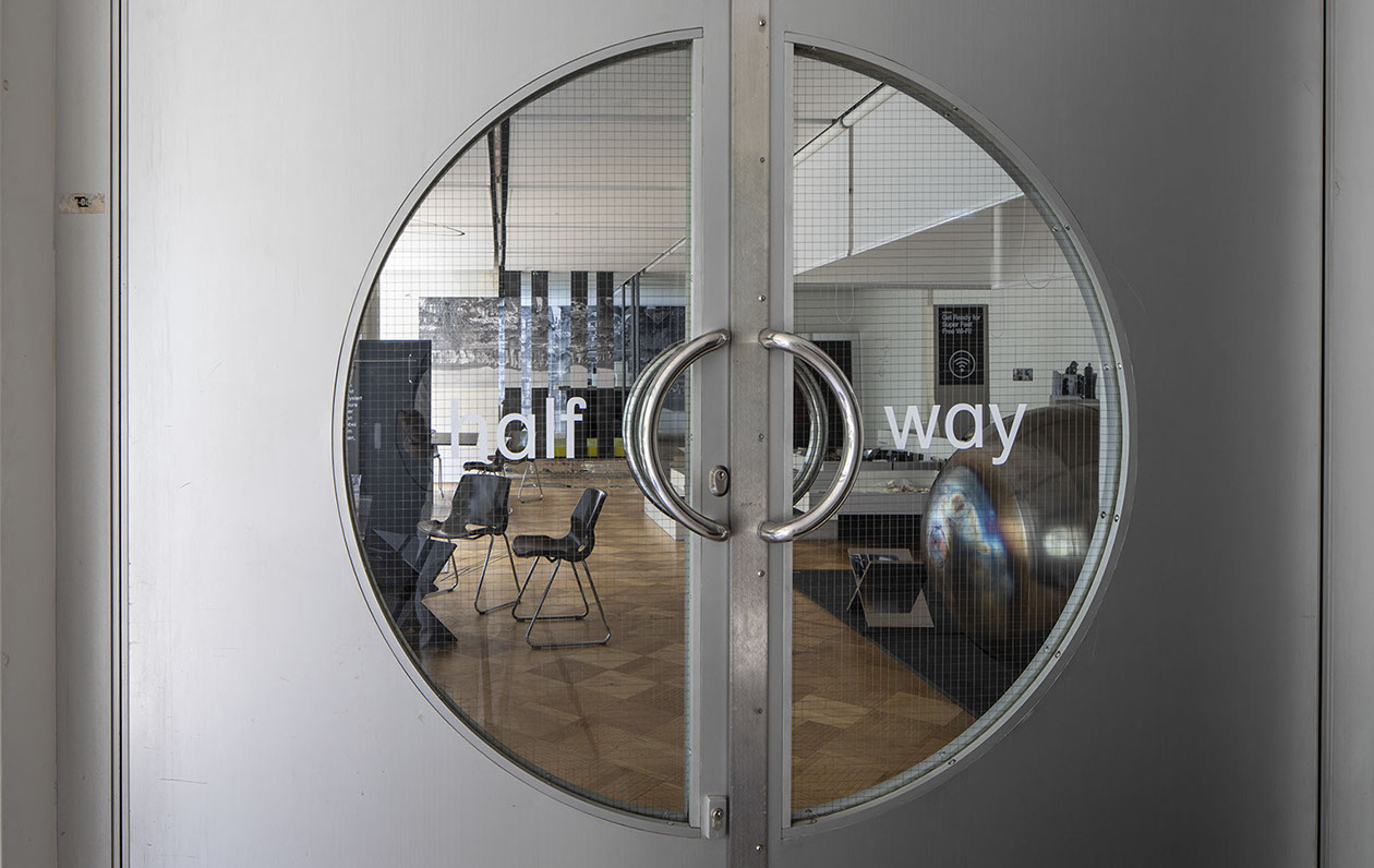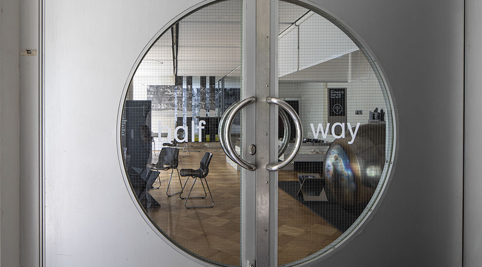 halfway befand sich in einem multifunktionalen Gebäudekomplex im 7. Wiener Gemeindebezirk; einem Bezirk, der in den letzten Jahren verstärkt den Dynamiken urbaner Transformationen ausgesetzt war. Die stadträumliche Situation stellt einen Ausnahmezustand dar, indem sich das Gebäude von drei Seiten zu einem halboffenen, begrünten Hof orientiert, der den üblichen Blockrand aufbricht.