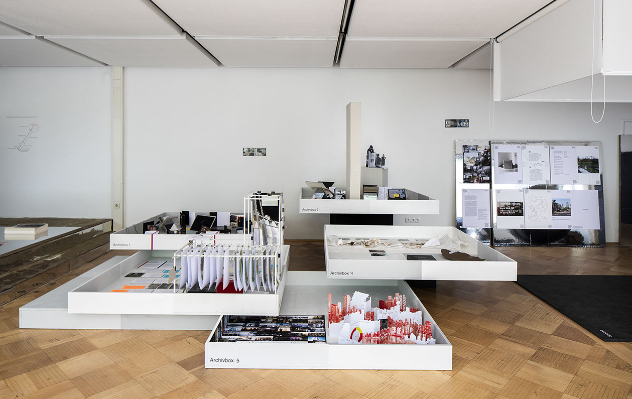 Ein fotografischer Archiv-Essay von Wolfgang Thaler dokumentierte fortlaufend die räumlichen Veränderungen quer durch die aufeinander aufbauenden und akkumulativen Kapitel hinweg, während die Fotografien als Prints an den Wänden selbst Teil des Settings wurden.