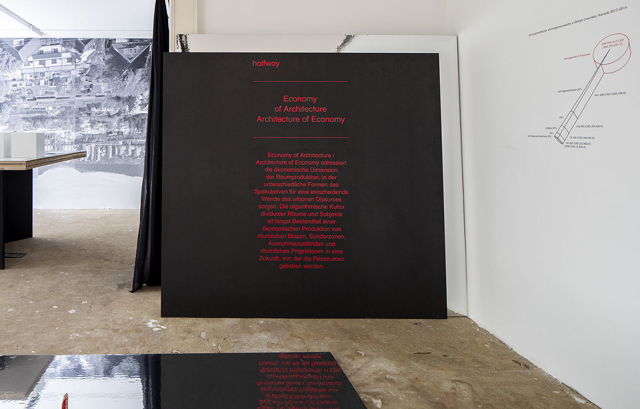 Economy of Architecture / Architecture of Economy addressed the economic dimension of spatial production, in which different forms of the speculative trigger a decisive turn in urban discourse. The algorithmic culture of dividual spaces and subjects has long been part of an economic production of spatial bubbles, special zones, states of emergency, and spatial projections into a future from which resources are borrowed.