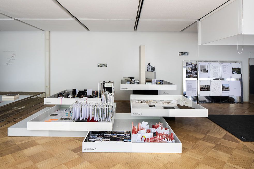 During the course of the spatializations, Prop-Talks were regularly held in which specific spatial situations in the halfway building complex were used as “stages” for discourse and equipped with specially developed props (models of symptomatic objects).