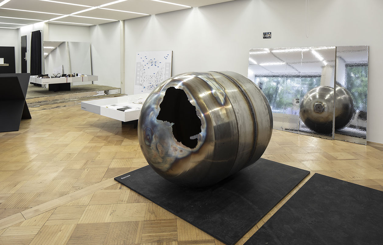 In her lecture Weltraumsalat (Space Salad) Sonia Leimer covered a range of topics, from space debris and artificially cultured “space salad” to the transformation of the traditional Marlengo Apple Crown. Through this broad spectrum of themes it became evident how forms and objects from different cultural and historical contexts migrate, change, and thereby make societal and spatial transformations tangible. Her sculpture Space Junk—part of the spatial setting in halfway—was based on a piece of space debris that crashed down in Saudi Arabia in 2001. In this uncontrolled collision of material the structure of geopolitical power relations becomes just as visible as the paradoxical physical weight of global infrastructures, which produce the apparently so smooth and immaterial networks of our digital environment.