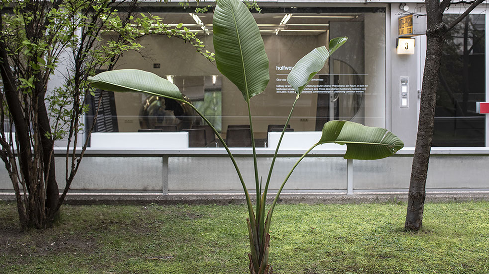 Die Arbeit Traveller's Tree von Anita Fuchs verknüpfte und verformte drei unterschiedliche Bepflanzungen und deren Habitate: ein überpflegtes „Stadtwäldchen“ im Gebäudekomplex halfway, einen Baum der Reisenden aus einer Küstenregion Mexikos und ein Waldstück als Outdoor-Arbeitsort an der österreichisch-ungarischen Grenze. In dieser eigenwilligen Überlagerung wurden die Pflanzen selbst zu Protagonisten und erzählten von modischen, ästhetischen und politischen Verhältnissen.